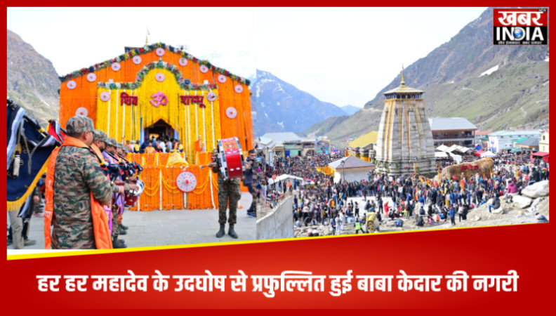 देहरादून, खबर न्यू इंडिया (न्यूज़ डेस्क) : रुद्रप्रयाग स्थित विश्वप्रसिद्ध ग्यारहवें ज्योर्तिलिंग श्री केदारनाथ धाम के कपाट शुक्रवार को विधि-विधान से खुल गए हैं। जैसे ही धाम के कपाट खुले हर-हर महादेव के जयकारों से घाटी गूंज उठी। श्रद्धा से भीगे मन भोलेनाथ का वंदन करने लगे। सैकड़ों श्रद्धालुओं ने समर्पण से मन झुकाया। कपाट उद्घाटन के लिए केदारनाथ मंदिर की भव्य सजावट की गई। मंदिर को 108 क्विंटल से अधिक फूलों से सजाया गया है। भव्य सजावट के बीच कपाट खुलते ही हेली से पुष्प वर्षा भी की गई, जिसे देख श्रद्धालु अभिभूत नज़र आए। भगवान केदारनाथ की पंचमुखी उत्सव डोली शीतकाल गद्दी स्थल श्री ओंकारेश्वर मंदिर, उखीमठ से होते हुए गुप्तकाशी, फाटा, गौरीकुंड जैसे विभिन्न पड़ावों से श्री केदारनाथ धाम पहुंची। कपाट खुलने की प्रक्रिया सुबह पांच बजे से शुरू हुई यद्यपि। 6 बजे श्री केदारनाथ धाम के रावल भीमाशंकर लिंग, पुजारी बागेश लिंग, विधायक केदारनाथ आशा नौटियाल, जिलाधिकारी सौरभ गहरवार, बीकेटीसी मुख्य कार्याधिकारी विजय प्रसाद थपलियाल, तीर्थ पुरोहित श्रीनिवास पोस्ती, धर्माचार्यों वेदपाठीगणों भैरव नाथ के अरविंद शुक्ला ने पूरब द्वार से मंदिर में प्रवेश किया तथा मंदिर के गर्भगृह के द्वार की पूजा-अर्चना में शामिल हुए। देवी देवताओं का आव्हान कर जन कल्याण की कामना तथा संकल्प के साथ ही ठीक प्रातः सात बजे श्री केदारनाथ मंदिर के कपाट श्रद्धालुओं के लिए दर्शनार्थ खोल दिये गये। इसी समय मंदिर का मुख्य दक्षिण द्वार भी खुल गया।