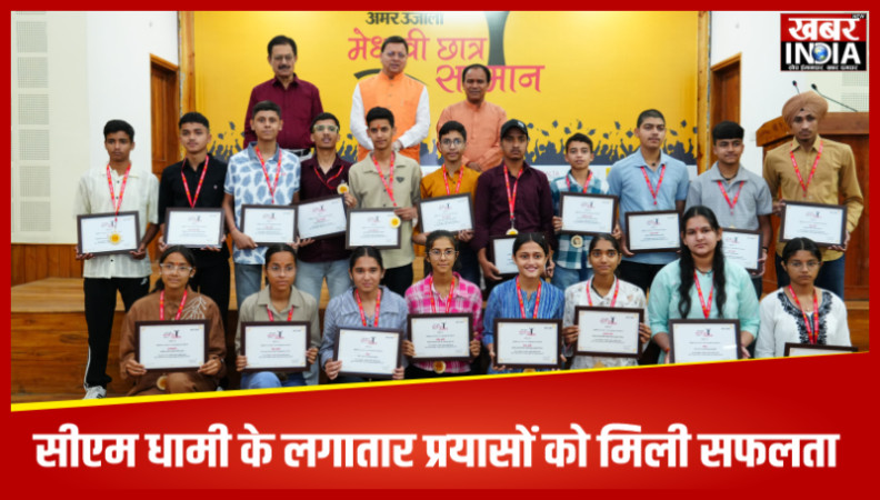 देहरादून, खबर न्यू इंडिया (न्यूज़ डेस्क) : मुख्यमंत्री पुष्कर सिंह धामी ने मंगलवार को मुख्यमंत्री आवास स्थित मुख्य सेवक सदन में मेधावी छात्र सम्मान समारोह में उत्तराखण्ड माध्यमिक शिक्षा बोर्ड के हाईस्कूल और इंटरमीडिएट के 75 मेधावी छात्र-छात्राओं को सम्मानित किया। अमर उजाला समाचार पत्र द्वारा आयोजित कार्यक्रम में मुख्यमंत्री ने कहा कि इस सम्मान समारोह के माध्यम से अमर उजाला प्रतिवर्ष हमारे राज्य के प्रतिभावान छात्रों को सम्मानित कर उनका उत्साहवर्धन कर रहा है।