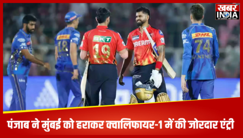 (स्पोर्ट्स डेस्क): पंजाब किंग्स ने मुंबई इंडियंस को सात विकेट से हराकर क्वालिफायर-1 में जोरदार एंट्री की हैं. इस जीत के साथ पंजाब किंग्स ने तय कर लिया है कि पंजाब किंग्स पहला क्वालीफायर मैच खेलेगी. वहीं मुंबई इंडियंस को एलिमिनेटर मैच के जरिये फाइनल की राह तय करनी होगी. मुकाबले में श्रेयस अय्यर ने टॉस जीतकर पहले गेंदबाजी करने का फैसला किया था. पहले बल्लेबाजी करने उतरी मुंबई ने 20 ओवर में सात विकेट खोकर 184 रन बनाए। जवाब में पंजाब ने 18.3 ओवर में तीन विकेट खोकर 187 रन बनाए और मुकाबला अपने नाम कर लिया। पंजाब की तरफ से ए विजय कुमार वैशाक ने 2 विकेट अपने नाम किए. वहीं, 20वें ओवर में अर्शदीप ने भी दो विकेट अपने नाम किए. हालांकि, सूर्यकुमार यादव ने 39 गेंद में 57 रन की पारी खेलकर टीम को 184 के स्कोर तक पहुंचाया. जिसके जवाब में पंजाब ने 19वें ओवर में ही अपनी जीत सुनिश्चित कर ली. पंजाब किंग्स के लिए प्रियांश आर्य और जोश इंग्लिश ने अर्धशतकीय पारी खेली. सलामी बल्लेबाज प्रियांश ने नौ चौके और दो छक्के की मदद से 62 रन बनाए। वहीं, इंग्लिश ने 42 गेंदों में 73 रनों की धमाकेदार पारी खेली। इसके बाद श्रेयस अय्यर ने टीम को जीत दिलाई। वह 16 गेंदों में 26 और नेहाल वढेरा दो रन बनाकर नाबाद रहे। मुंबई के लिए मिचेल सैंटनर ने दो और बुमराह ने एक विकेट लिया।