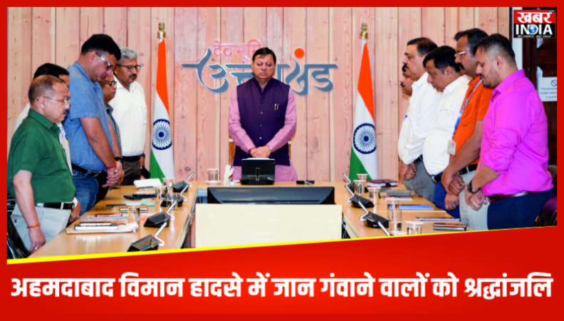 देहरादून, खबर न्यू इंडिया (न्यूज़ डेस्क: मुख्यमंत्री पुष्कर सिंह धामी ने शुक्रवार को मुख्यमंत्री आवास में उच्च अधिकारियों के साथ बैठक के दौरान गुजरात के अहमदाबाद में हुए विमान हादसे में जान गंवाने वालों को श्रद्धांजलि दी। उन्होंने मौन रखकर दिवंगत आत्माओं की शांति के लिए प्रार्थना की एवं शोकाकुल परिजनों के प्रति अपनी संवेदनाएं भी व्यक्ति की।मुख्यमंत्री ने कहा कि यह हादसा देश और विश्व के लिए अत्यंत दुःखद एवं पीड़ादायक है। राज्य सरकार की संवेदनाएं इस दुःख की घड़ी में मृतकों के परिवारजनों के साथ है।