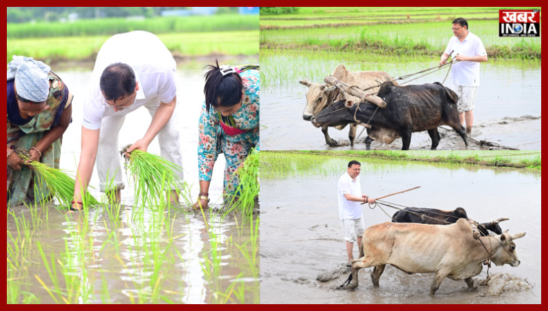 सीएम धामी ने खटीमा में हल चलाकर की धान रोपाई, किसानों के श्रम को किया नमन