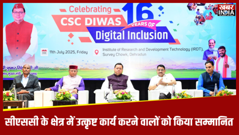 देहरादून, खबर न्यू इंडिया (न्यूज़ डेस्क) : मुख्यमंत्री पुष्कर सिंह धामी ने शुक्रवार को आई.आर.डी.टी ऑडिटोरियम, सर्वे चौक, देहरादून में सी.एस.सी (कॉमन सर्विस सेंटर) दिवस-2025 के अवसर पर आयोजित कार्यक्रम में प्रतिभाग किया। इस दौरान उन्होंने सीएससी के क्षेत्र में उत्कृष्ट कार्य करने वाले लोगों को CSC वी.एल.ई पुरस्कार से भी सम्मानित किया। मुख्यमंत्री ने कहा कि सीएससी उस परिवर्तन का प्रतीक है, जो देश के कोने-कोने तक पहुंच गया है। यह आम लोगों के विश्वास का केंद्र होने के साथ-साथ लोगों की आकांक्षाओं को भी पूरा करता है। सीएससी के माध्यम से शहरों की सेवाएं एक क्लिक में गांव तक पहुंच रही हैं तथा देश की ग्राम पंचायतें डिजिटल पंचायतें बन रही हैं। उन्होंने कहा कि उत्तराखंड जैसे पहाड़ी राज्य में सीएससी की भूमिका और भी महत्वपूर्ण हो जाती है।