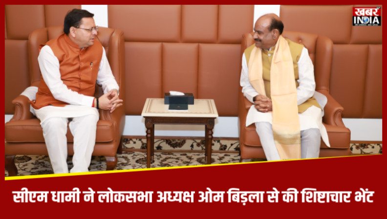 सीएम धामी ने लोकसभा अध्यक्ष ओम बिड़ला से की शिष्टाचार भेंट