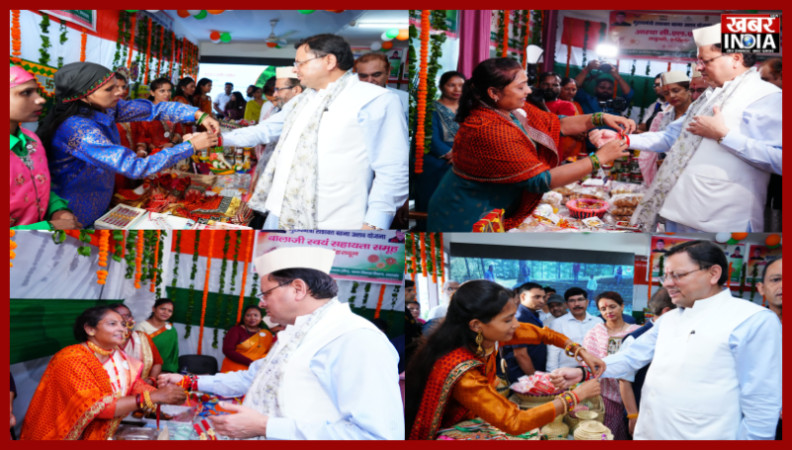देहरादून, खबर न्यू इंडिया (न्यूज़ डेस्क) : मुख्यमंत्री पुष्कर सिंह धामी ने सोमवार को सचिवालय परिसर में मुख्यमंत्री सशक्त बहना उत्सव योजना अन्तर्गत राज्य स्तरीय कार्यक्रम का समस्त 95 विकासखंडो में शुभारम्भ एवं महिला स्वयं सहायता समूहों द्वारा रक्षाबन्धन पर्व हेतु लगाये गये स्टॉलों का अवलोकन किया।इस अवसर पर मुख्यमंत्री धामी को विभिन्न महिला स्वयं सहायता समूहों से जुड़ी बहनों ने राखी बाँधी। मुख्यमंत्री ने उपस्थित महिला स्वयं सहायता समूहों को रक्षाबंधन की अग्रिम बधाई एवं शुभकामनायें दी। मुख्यमंत्री ने महिला स्वयं सहायता समूहों द्वारा स्वरोजगार, महिला स्वावलंबन, स्थानीय उत्पादों व हस्तशिल्प में किये जा कार्यों की सराहना करते हुए उनका उत्साहवर्धन किया।