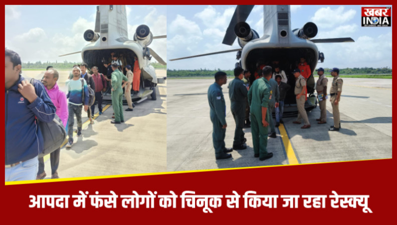 आपदा में फंसे लोगों को चिनूक से किया जा रहा रेस्क्यू