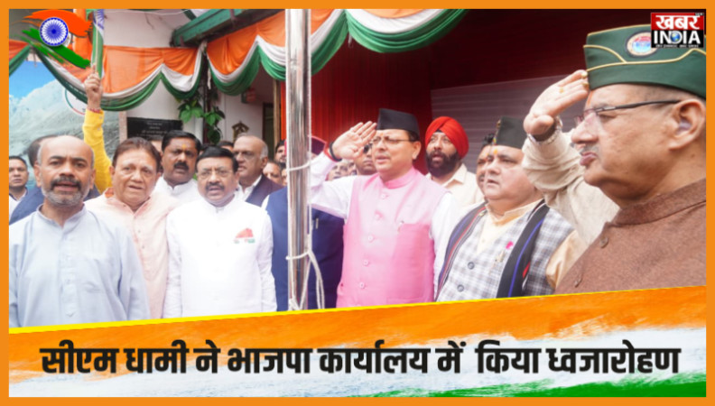 सीएम धामी ने बलवीर रोड स्थित भाजपा कार्यालय में किया ध्वजारोहण