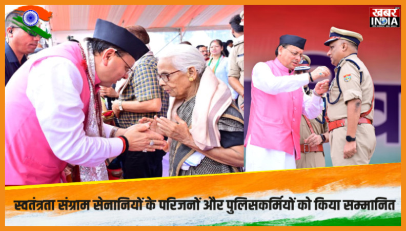Independence Day: सीएम धामी ने स्वतंत्रता संग्राम सेनानियों के परिजनों और पुलिसकर्मियों को किया सम्मानित
