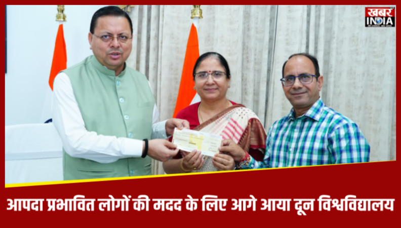 आपदा प्रभावित लोगों की मदद के लिए आगे आया दून विश्वविद्यालय, सीएम धामी को सौंपा चेक