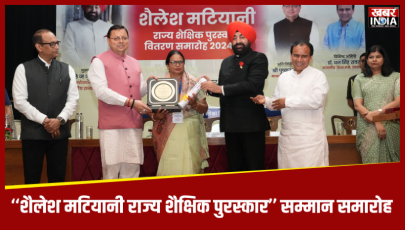 देहरादून, खबर न्यू इंडिया (न्यूज़ डेस्क) : शिक्षक दिवस के अवसर पर शुक्रवार को राजभवन में ‘‘शैलेश मटियानी राज्य शैक्षिक पुरस्कार’’ सम्मान समारोह आयोजित हुआ। समारोह में राज्यपाल लेफ्टिनेंट जनरल गुरमीत सिंह (से नि), मुख्यमंत्री पुष्कर सिंह धामी और शिक्षा मंत्री डॉ. धन सिंह रावत ने वर्ष-2024 में शैलेश मटियानी राज्य शैक्षिक पुरस्कारों के लिए चयनित 16 शिक्षक एवं शिक्षिकाओं को सम्मानित किया। वर्ष-2024 में चयनित 09 प्रारम्भिक शिक्षक, 05 माध्यमिक शिक्षक, 01 शिक्षक प्रशिक्षक एवं 01 संस्कृत शिक्षक को यह सम्मान प्रदान किया गया है। (सूची संलग्न)