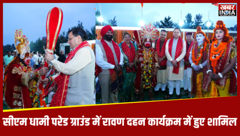 सीएम धामी परेड ग्राउंड में रावण दहन कार्यक्रम में हुए शामिल
