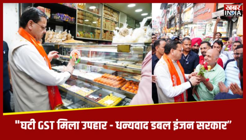 देहरादून, खबर न्यू इंडिया (न्यूज़ डेस्क): मुख्यमंत्री पुष्कर सिंह धामी देहरादून के प्रेमनगर में आयोजित 'GST बचत उत्सव' कार्यक्रम में शामिल हुए। यह आयोजन देशभर में जीएसटी दरों में की गई कटौती को लेकर जनजागरूकता फैलाने और जनता को इसके प्रत्यक्ष लाभों से अवगत कराने के उद्देश्य से किया गया। मुख्यमंत्री धामी ने सोमवार शाम देहरादून के प्रेमनगर स्थानीय बाज़ार पहुंचकर व्यापारियों से मुलाकात कर नए जी.एस.टी स्लैब के बारे में फीडबैक लिया एवं व्यापारियों से आम जन को भी घटे हुए जी.एस.टी के बारे में जानकारी देने का आग्रह किया।