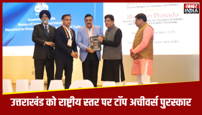 देहरादून, खबर न्यू इंडिया (न्यूज़ डेस्क) : उत्तराखण्ड को व्यापार सुधार कार्य योजना BRAP 2024 के अंतर्गत पांच प्रमुख सुधार श्रेणियों में टॉप अचीवर्स पुरस्कार से सम्मानित किया गया है, जो देश में किसी भी राज्य और केंद्र शासित प्रदेश द्वारा प्राप्त सर्वोच्च संख्या है। मंगलवार को नई दिल्ली में आयोजित उद्योग समागम 2025 में व्यापार सुधार कार्य योजना BRAP 2024 के अंतर्गत उत्तराखंड के उत्कृष्ट प्रदर्शन को मान्यता देते हुए इस पुरस्कार की घोषणा की गई। केंद्रीय वाणिज्य एवं उद्योग मंत्री पीयूष गोयल द्वारा उत्तराखंड सरकार के उद्योग सचिव विनय शंकर पांडे और महानिदेशक एवं आयुक्त उद्योग डॉ. सौरभ गहरवार को यह प्रतिष्ठित पुरस्कार प्रदान किया गया। इस अवसर पर केंद्रीय वाणिज्य एवं उद्योग राज्य मंत्री जितिन प्रसाद भी उपस्थित थे। उत्तराखंड को देश में व्यवसाय प्रवेश, निर्माण परमिट सक्षमकर्ता, पर्यावरण पंजीकरण, निवेश सक्षमकर्ता एवं श्रम विनियमन सक्षमकर्ता जैसे पाँच सुधार क्षेत्रों में सर्वाेच्य उपलब्धि प्राप्त करने वाला राज्य माना गया है। जो उत्तराखंड की व्यवसाय सुगमता (ईओडीबी) यात्रा में एक महत्वपूर्ण उपलब्धि है। यात्रा में 2015 में 23वें स्थान से लेकर BRAP 2024 के तहत सुधारों में राष्ट्रीय स्तर पर अग्रणी बनने की यह महत्वपूर्ण यात्रा हैं।