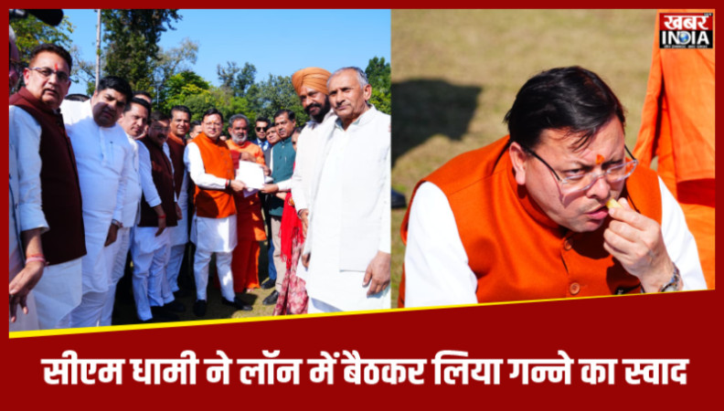 सीएम धामी ने सुनी किसानों की समस्याएं, लॉन में बैठकर लिया गन्ने का स्वाद