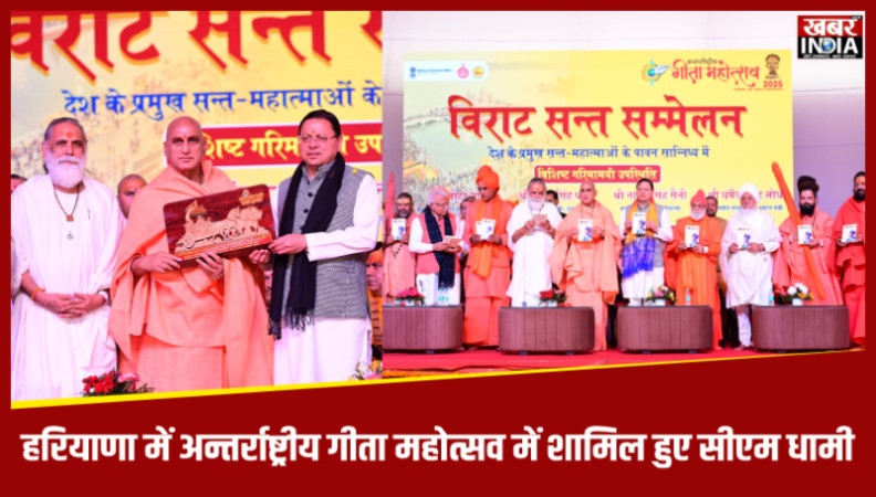 कुरुक्षेत्र/देहरादून, खबर न्यू इंडिया (न्यूज़ डेस्क): मुख्यमंत्री पुष्कर सिंह धामी ने शनिवार को कुरुक्षेत्र, हरियाणा में अन्तर्राष्ट्रीय गीता महोत्सव में प्रतिभाग किया। इस अवसर पर अपने संबोधन में मुख्यमंत्री ने कहा कि धर्म क्षेत्र कुरुक्षेत्र की पवित्र भूमि पर भगवान श्रीकृष्ण ने अर्जुन को जो दिव्य उपदेश प्रदान किया, वही श्रीमद्भगवद्गीता के रूप में मानवता का शाश्वत ज्ञान बनकर पूरे विश्व को दिशा दिखा रहा है। इस भूमि से धर्म, कर्तव्य, सत्य, निष्काम कर्म और आत्मोन्नति का संदेश सम्पूर्ण मानव समाज में प्रवाहित हुआ। इस भव्य महोत्सव के माध्यम से गीता के संदेश को जन-जन तक पहुँचाने के लिए उन्होंने हरियाणा सरकार एवं स्वामी ज्ञानानंद जी महाराज के प्रति अपनी कृतज्ञता प्रकट की।