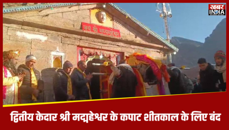 देहरादून, खबर न्यू इंडिया (न्यूज़ डेस्क): द्वितीय केदार श्री मद्महेश्वर जी के कपाट मंगलवार को प्रातः आठ बजे मार्गशीर्ष कृष्ण चतुर्दशी स्वाति नक्षत्र के शुभ मुहूर्त में शीतकाल के लिए बंद हो गए। इस अवसर पर काफी संख्या में श्रद्धालु, बीकेटीसी कर्मचारी-अधिकारी, विभिन्न विभागों और प्रशासन के अधिकारी उपस्थित रहे। कपाट बंद होने की प्रक्रिया के अंतर्गत मंगलवार को ब्रह्म मुहूर्त में मंदिर खुला। पूजा-अर्चना अर्चना के बाद सात बजे से कपाट बंद की प्रक्रिया शुरू हो गई। इसके पश्चात पुजारी ने बीकेटीसी मुख्य कार्याधिकारी/कार्यपालक मजिस्ट्रेट श्री विजय प्रसाद थपलियाल, बीकेटीसी सदस्य प्रह्लाद पुष्पवान एवं पंच गौंडारी हकहकूकधारियों की उपस्थिति में श्री मद्महेश्वर जी के स्वयंभू शिवलिंग को समाधि रूप दिया और स्थानीय पुष्पों एवं राख से ढंका। इसके बाद मंदिर के कपाट श्री मद्महेश्वर जी के जय घोष के साथ बंद कर दिए गए।
