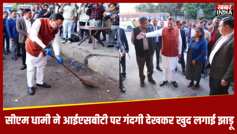 सीएम धामी ने आईएसबीटी का किया औचक निरीक्षण, गंदगी देखकर खुद लगाई झाड़ू