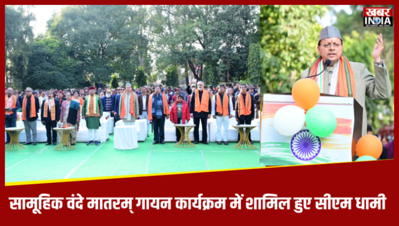देहरादून, खबर न्यू इंडिया (न्यूज़ डेस्क): मुख्यमंत्री पुष्कर सिंह धामी ने गणतंत्र दिवस के अवसर पर देहरादून स्थित गांधी पार्क में भारत विकास परिषद द्वारा आयोजित सामूहिक वंदे मातरम् गायन कार्यक्रम में प्रतिभाग किया। इस अवसर पर अपने संबोधन में मुख्यमंत्री ने उपस्थित जनसमूह को गणतंत्र दिवस की हार्दिक शुभकामनाएं दीं। उन्होंने कहा कि गणतंत्र दिवस के पावन अवसर पर इस गरिमामयी सामूहिक वंदे मातरम् गायन कार्यक्रम में सहभागिता करना उनके लिए अत्यंत गौरव और हर्ष का विषय है। मुख्यमंत्री ने कहा कि यह अवसर इसलिए भी विशेष है क्योंकि राष्ट्रगीत वंदे मातरम् अपनी रचना के 150 गौरवशाली वर्ष पूर्ण कर चुका है।