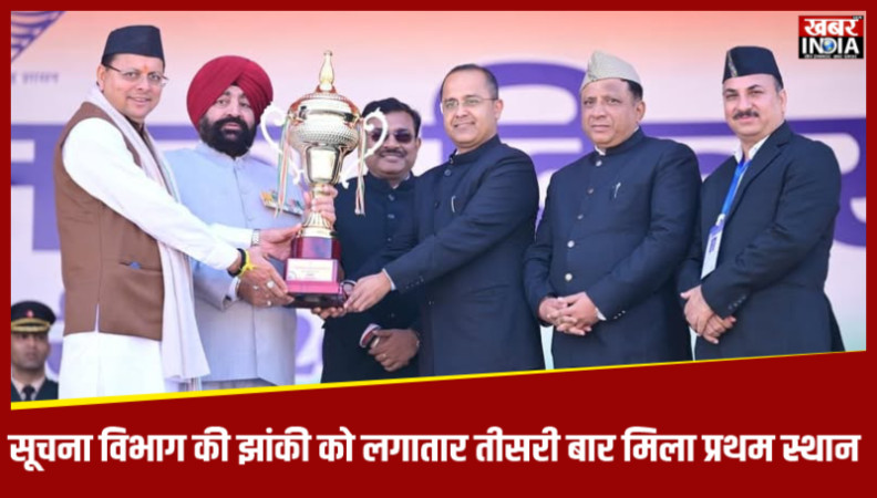 देहरादून, खबर न्यू इंडिया (न्यूज़ डेस्क) : गणतंत्र दिवस के अवसर पर परेड ग्राउंड, देहरादून में आयोजित राज्य स्तरीय समारोह में सूचना विभाग की झांकी ने लगातार तीसरी बार प्रथम स्थान प्राप्त किया। ‘‘रजत जयंती एवं शीतकालीन धार्मिक यात्रा व पर्यटन’’ पर आधारित इस झांकी में राज्य के पच्चीस वर्षों की विकास यात्रा के साथ ही तीर्थाटन एवं पर्यटन विकास से जुड़े पहलुओं को दिखाया गया।
