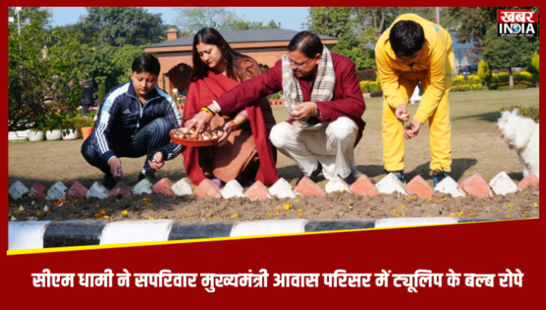 सीएम धामी ने सपरिवार मुख्यमंत्री आवास परिसर में ट्यूलिप के बल्ब रोपे