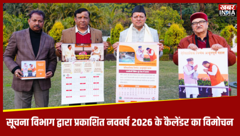 देहरादून, खबर न्यू इंडिया (न्यूज़ डेस्क): मुख्यमंत्री पुष्कर सिंह धामी ने मुख्यमंत्री आवास में सूचना विभाग, उत्तराखंड सरकार द्वारा प्रकाशित नववर्ष 2026 के आधिकारिक कैलेंडर का विधिवत विमोचन किया। इस अवसर पर मुख्यमंत्री ने कैलेंडर के आकर्षक स्वरूप, उत्कृष्ट मुद्रण गुणवत्ता एवं विषयवस्तु की सराहना करते हुए कहा कि यह कैलेंडर राज्य सरकार की योजनाओं, उपलब्धियों तथा जनकल्याणकारी नीतियों के साथ-साथ सरकार द्वारा लिए गए ऐतिहासिक एवं दूरदर्शी निर्णयों को प्रभावी ढंग से जनमानस तक पहुँचाने का सशक्त माध्यम है। मुख्यमंत्री धामी ने कहा कि सूचना विभाग द्वारा प्रकाशित यह कैलेंडर केवल तिथियों का संकलन नहीं है, बल्कि यह उत्तराखंड की विकास यात्रा, प्रशासनिक प्रतिबद्धता एवं जनसेवा के संकल्प को दर्शाने वाला महत्वपूर्ण दस्तावेज है। कैलेंडर के माध्यम से राज्य सरकार के निरंतर प्रयासों को एक सुसंगठित एवं रचनात्मक रूप में प्रस्तुत किया गया है, जो आमजन के लिए जानकारीपूर्ण एवं प्रेरणादायी सिद्ध होगा।